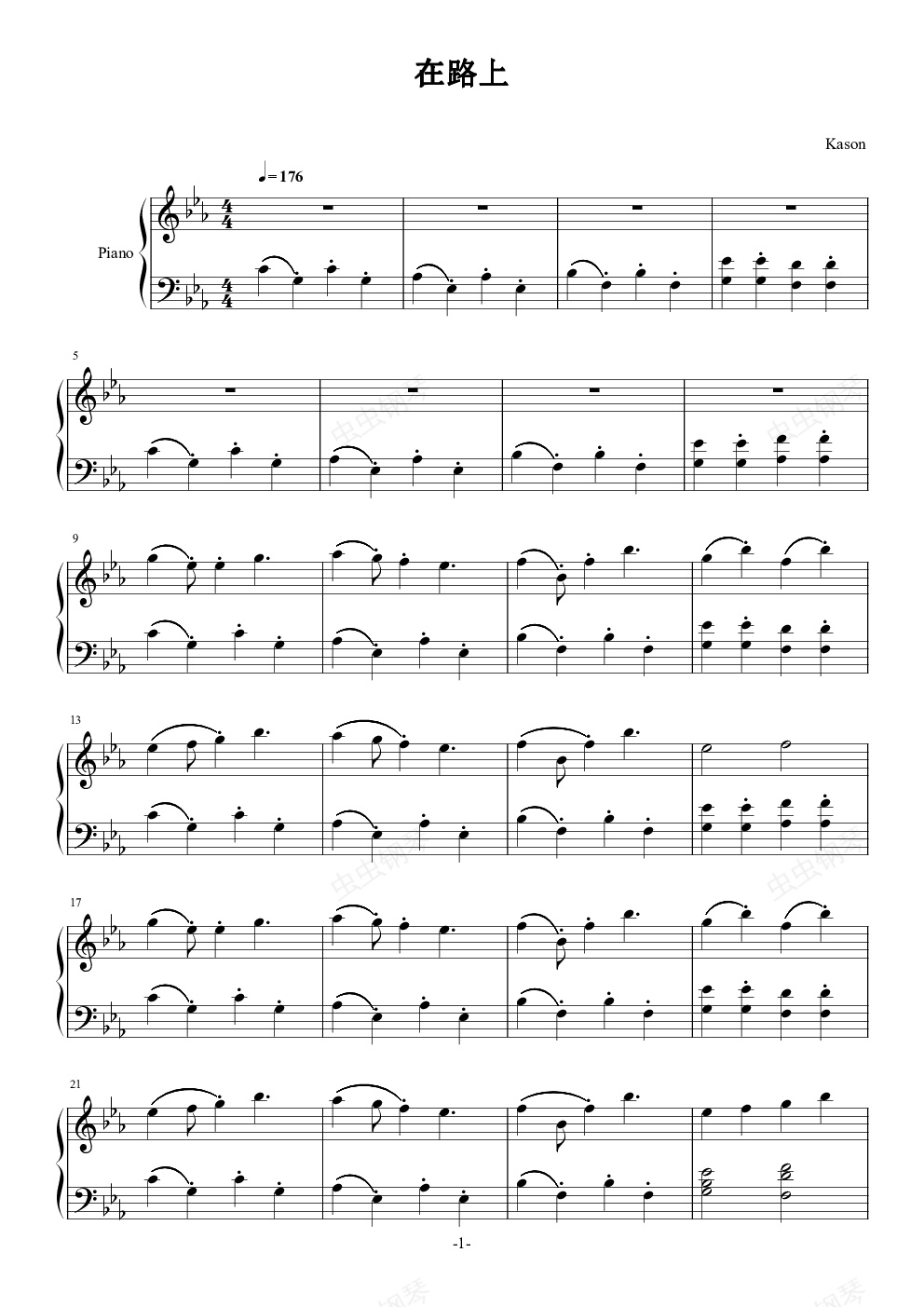 钢琴谱:在路上