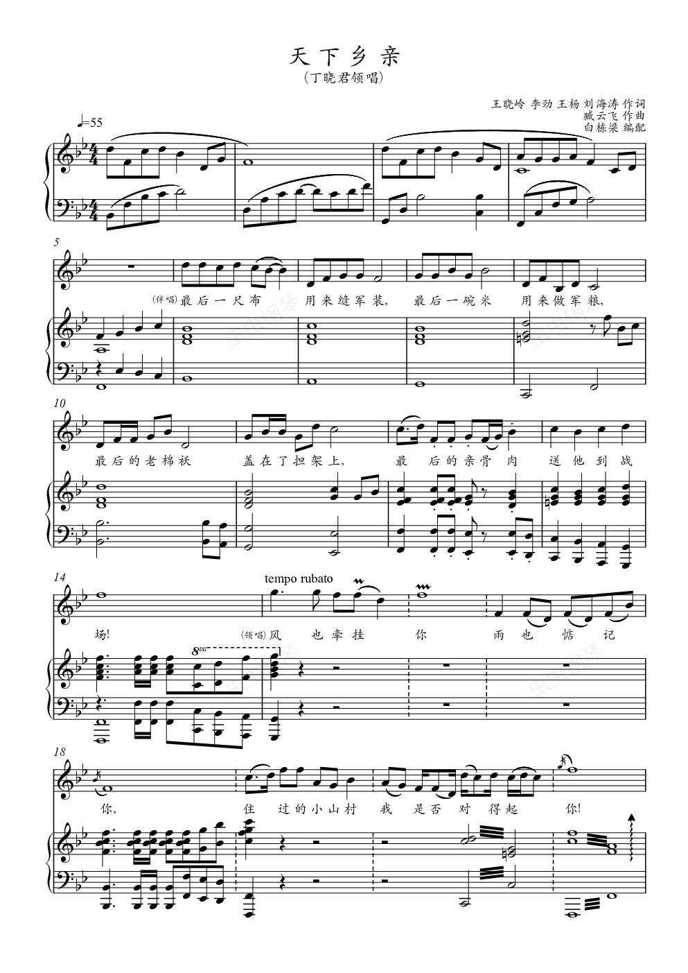 钢琴谱:歌曲《天下乡亲》钢琴伴奏谱