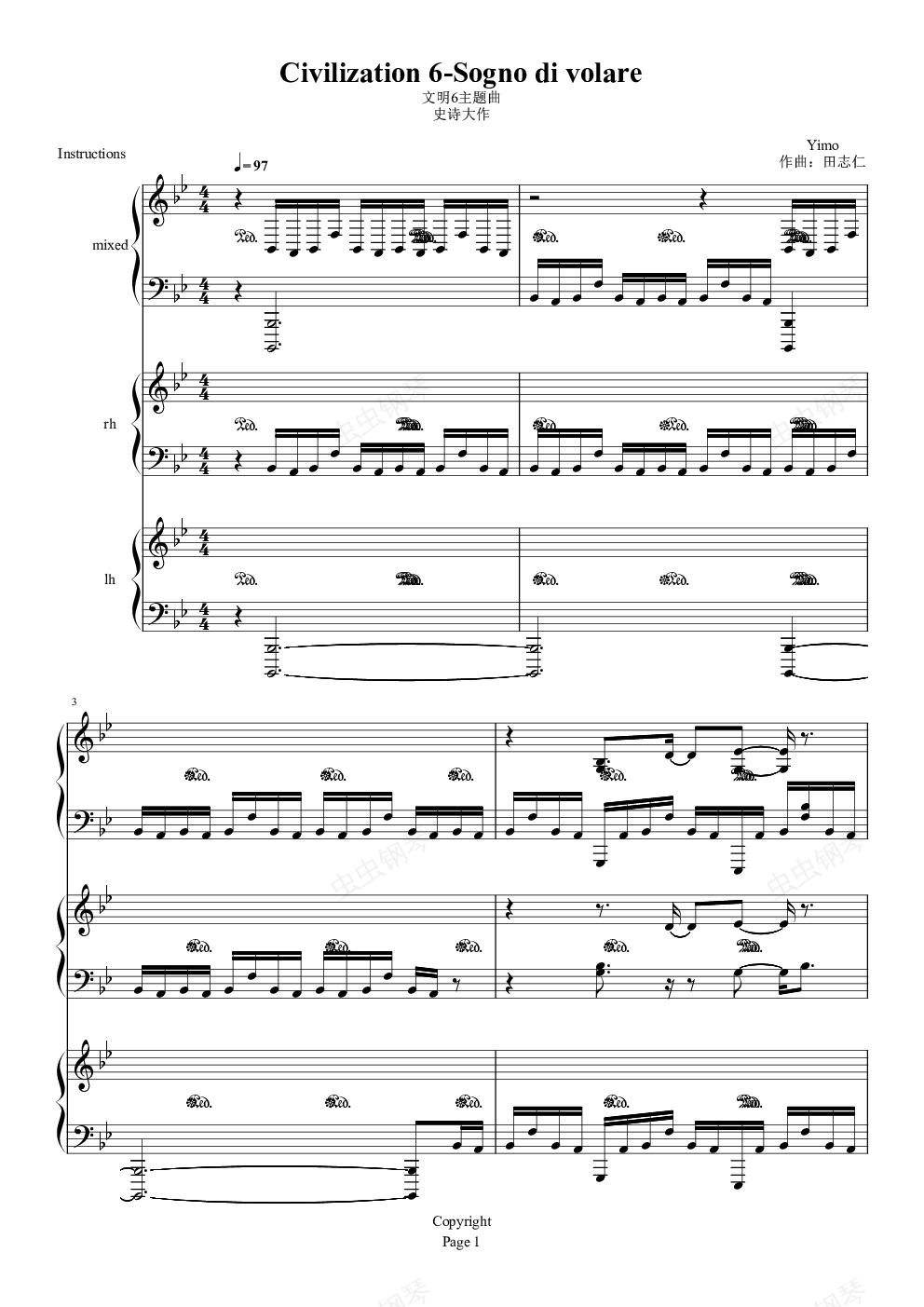 钢琴谱:文明6-Sogno di Volare