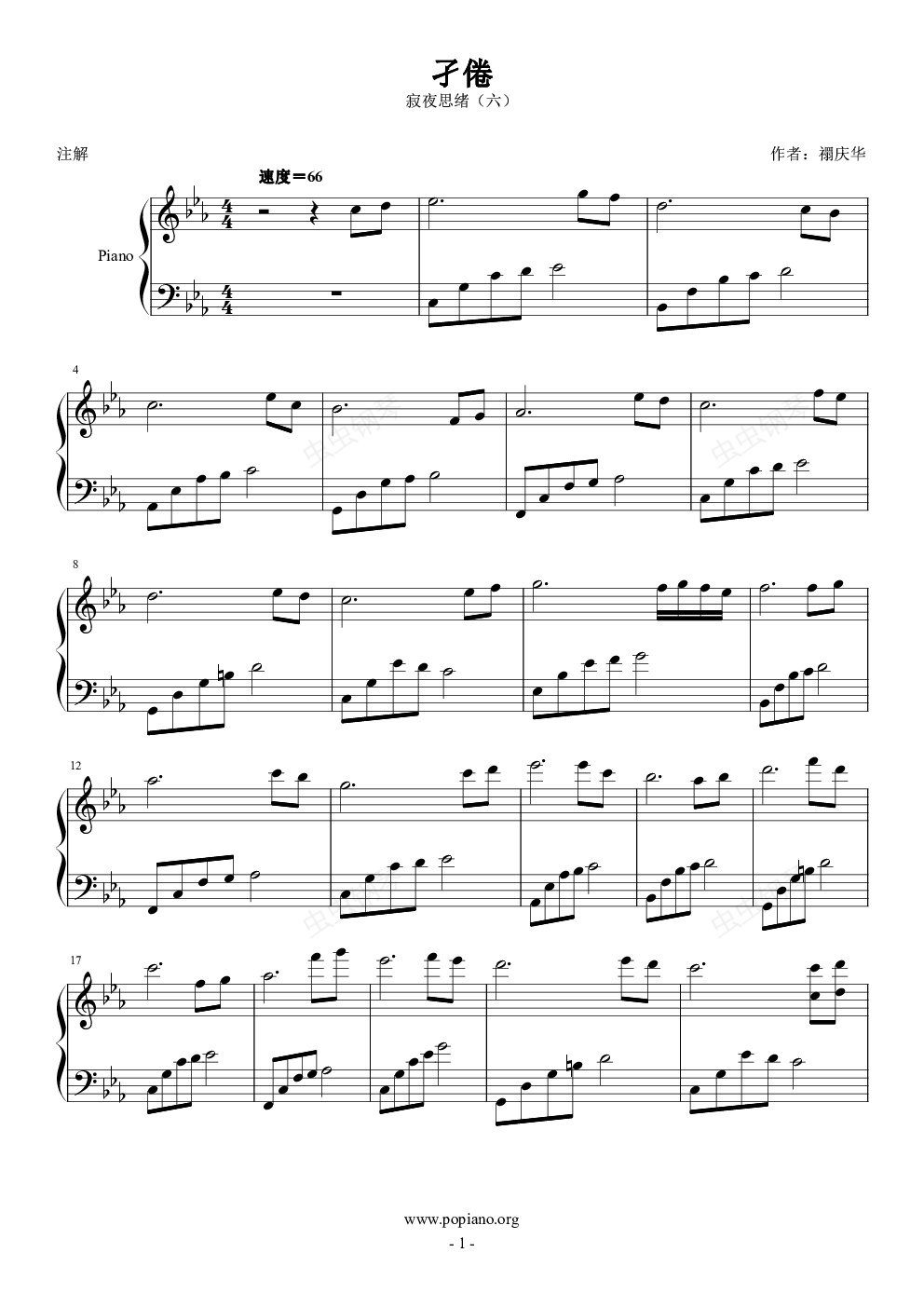 钢琴谱:孑倦