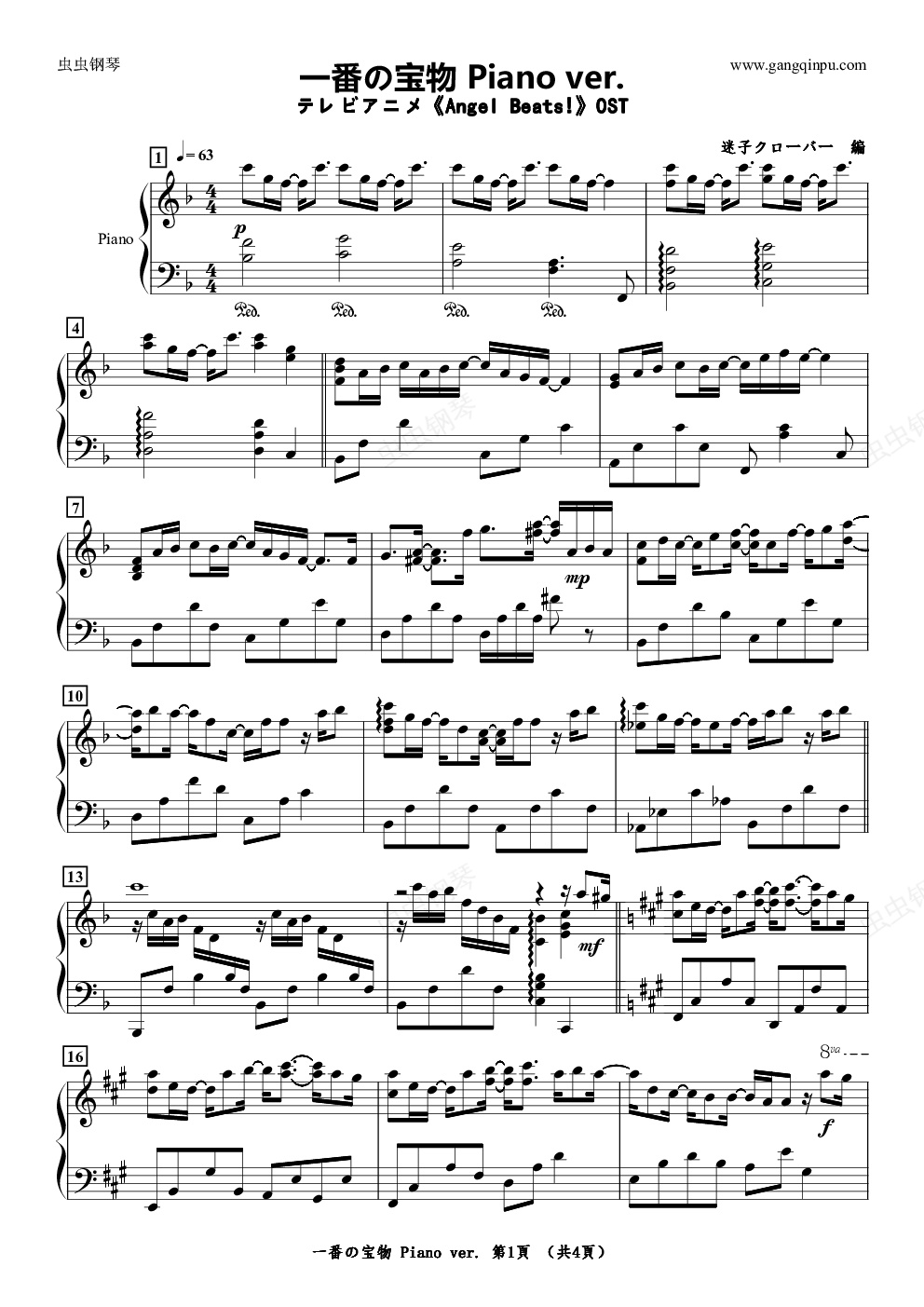 钢琴谱:【Angel Beats!】一番の宝物 Piano ver.