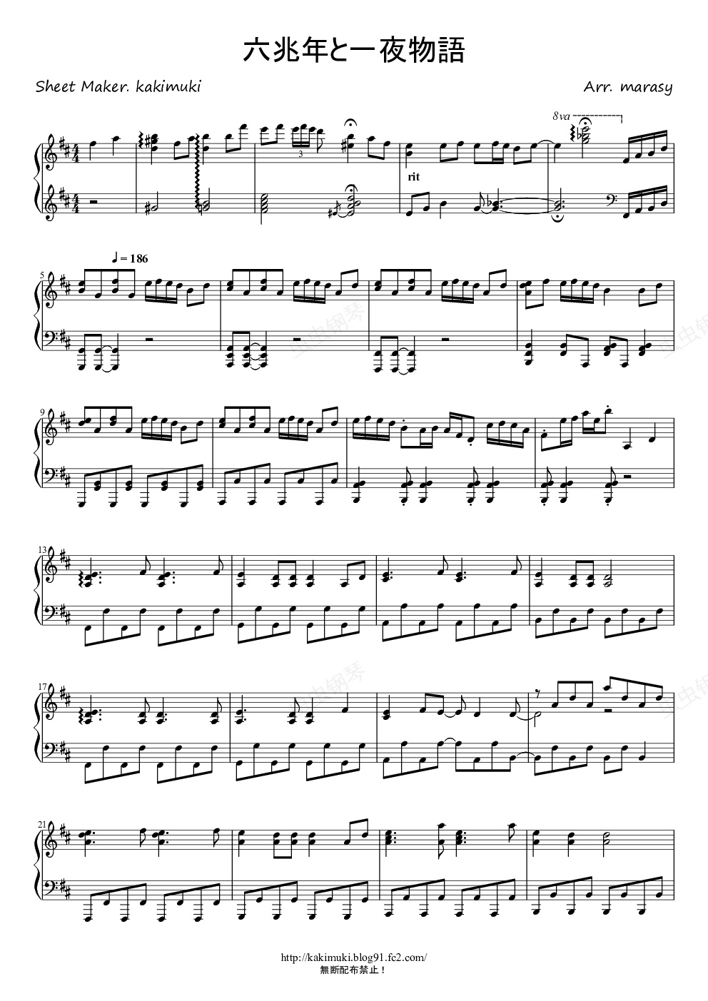 钢琴谱:【触手猴】六兆年と一夜物语