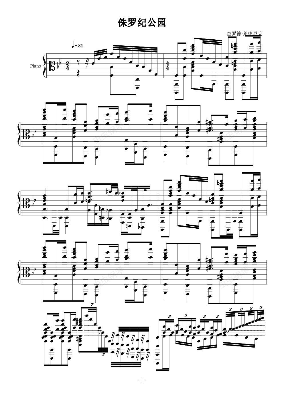 [IMG]/pu/2016/11/27/__1233__[/IMG]最有名的电影钢琴改编的作品(加勒比海盗钢琴版便是他所作),侏罗纪公园选取了电影中最经典熟悉的部分改编为钢琴曲。采用了古典的编曲方式融进现代音乐,丰富无比,钢琴独奏堪比交响乐。原曲/html/,本谱在其基础上进行了部分真实化(人性化)处理。二稿,力度见原曲