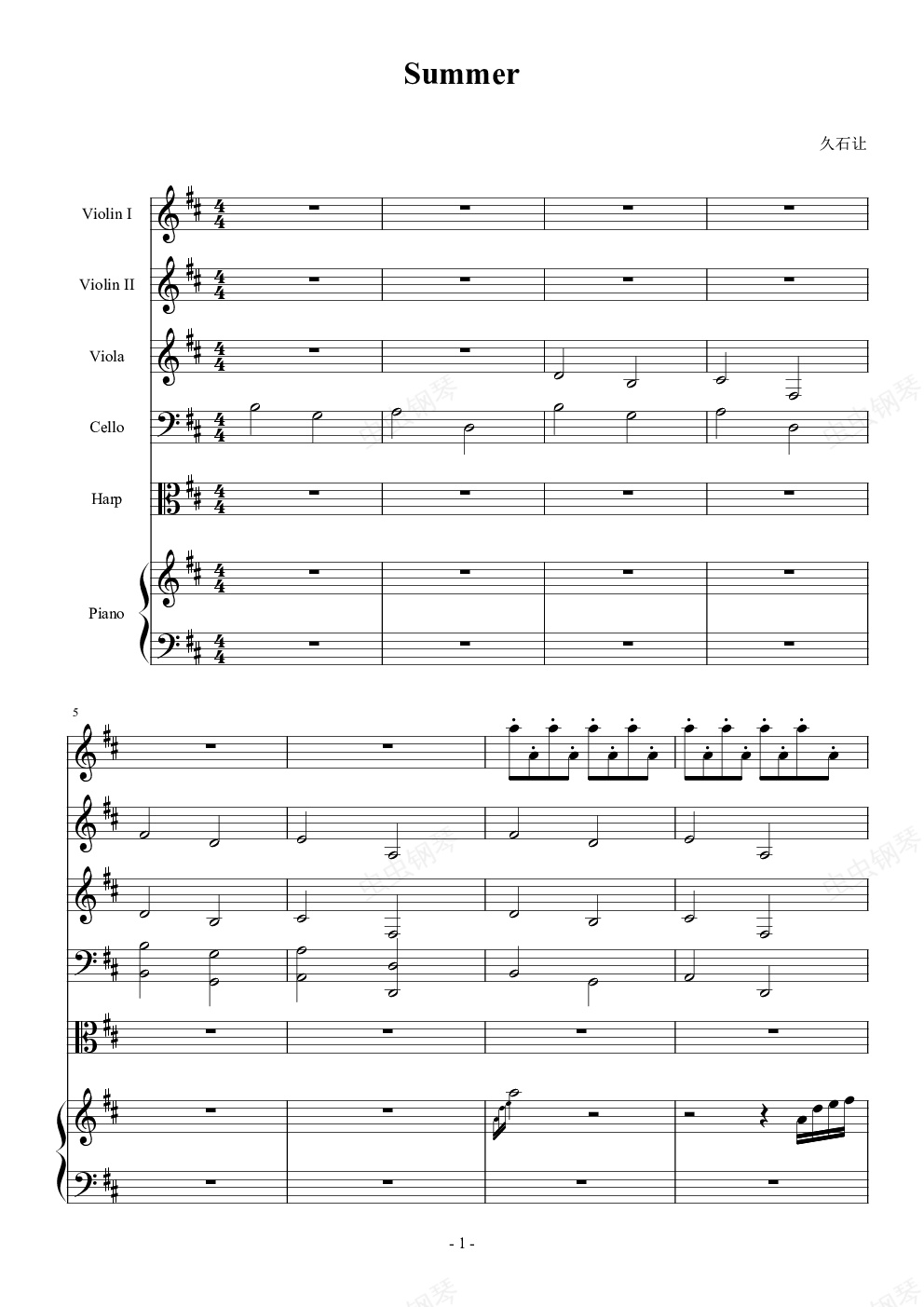 钢琴谱:summer (钢琴+弦乐)