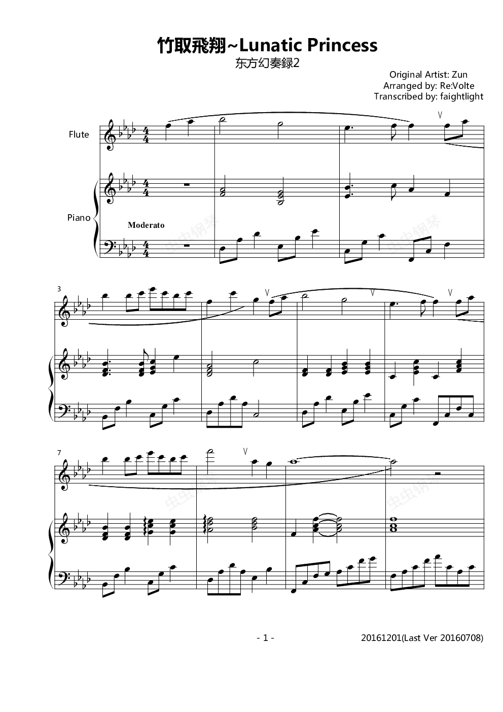 钢琴谱:【东方幻奏录2】竹取飞翔 长笛-钢琴