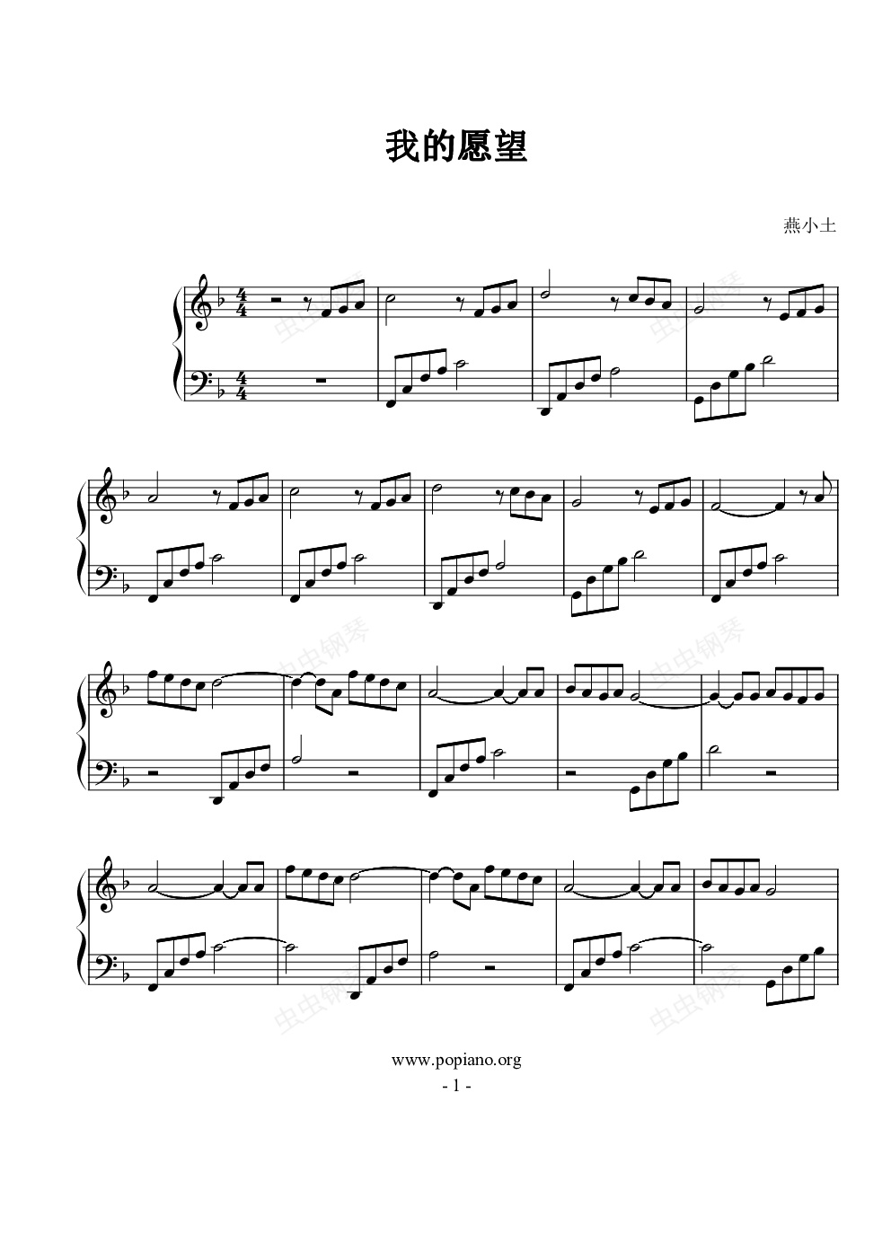 钢琴谱:我的愿望