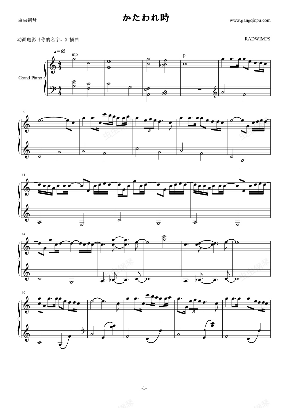 还记得前天刚扒个大概的样子出来,基友看了一眼说“这谱子网上不是有么?”……(死也找不到啊!摔)。根据原谱补正了很多有疑虑的地方,但是不完全一样。[IMG]/pu/2016/12/8/__1310__[/IMG]希望有能力的同学们去某宝购买一份正版的原谱支持一下——顺带一说这是我扒君名的最后一首了,下周四六级,心力交瘁啊……祝愿各位有个好成绩。修复了第28小节声音突然变小的问题。 友情提示:由于很多人问为啥有第三行,我这里说明一下。这个谱需要两个人合作才能弹完,第二个人负责最后的第三行。再者,诸位大可和您的另一半合作,效果拔群。 图片来源于P站,ID
