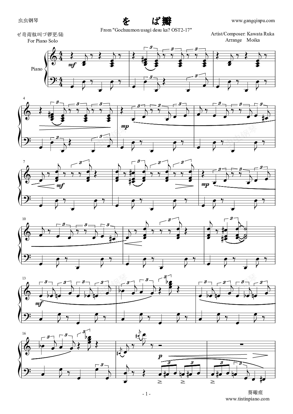钢琴谱:点兔?OST2-17 - もふもふ天国
