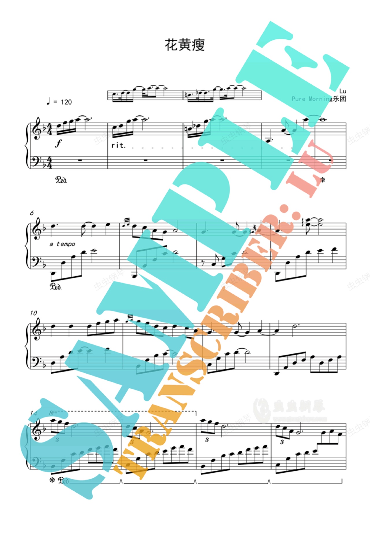 钢琴谱:花黄瘦 - Pure Morning 乐团