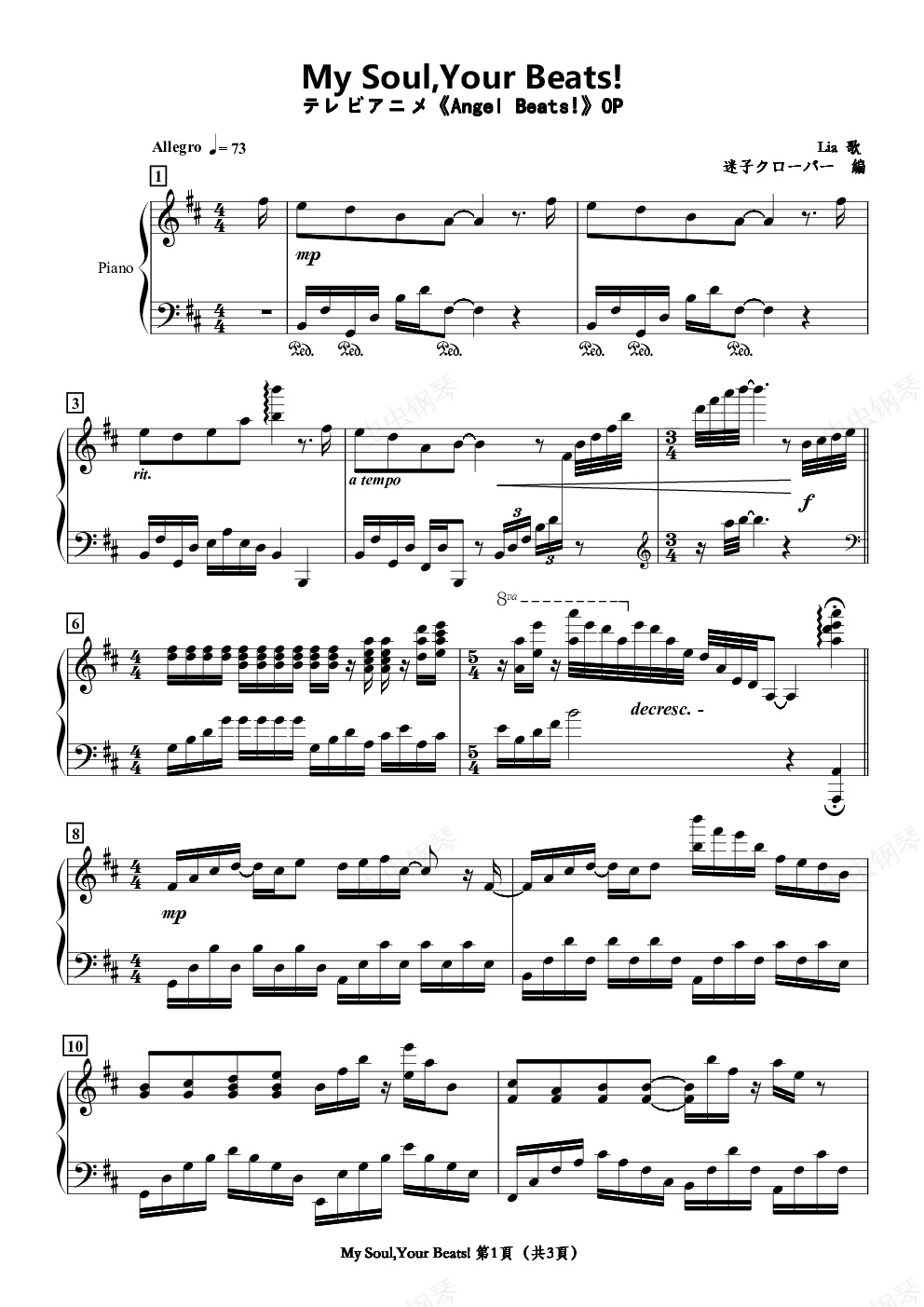 钢琴谱:【Angel Beats!】My Soul,Your Beats!