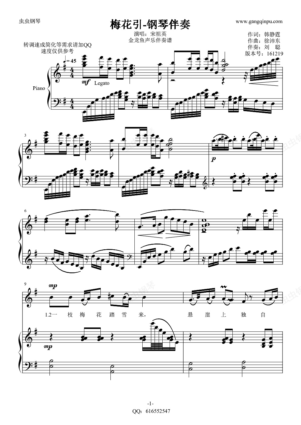 钢琴谱:梅花引-金龙鱼钢琴伴奏161219