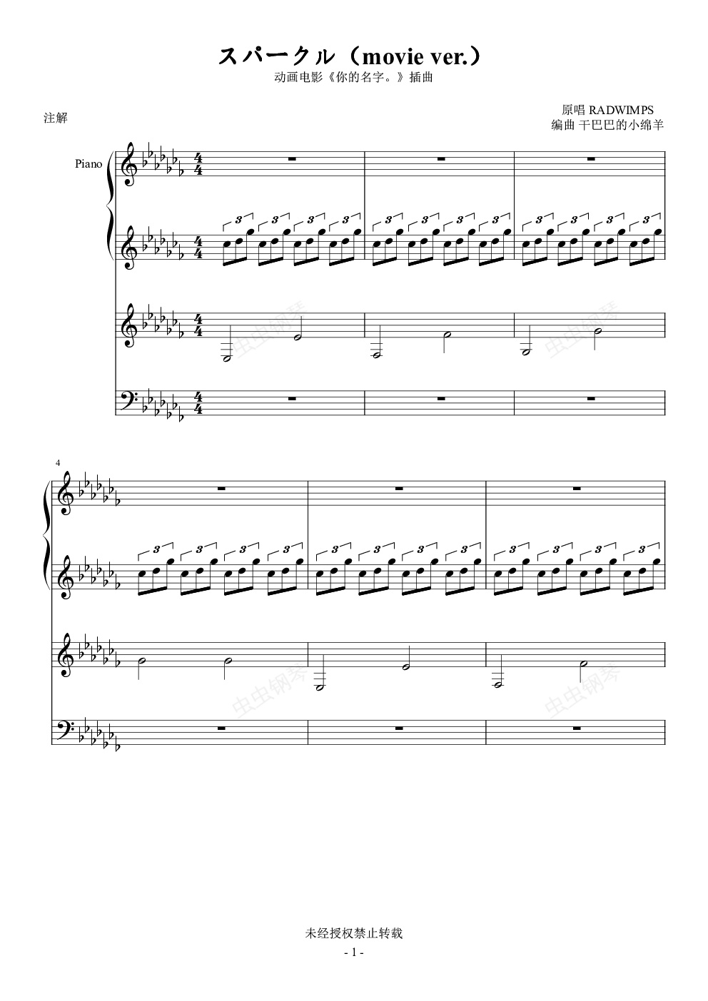 钢琴谱:スパークル(movie ver.)sheep版