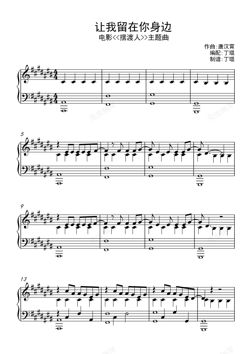 钢琴谱:让我留在你身边 电影《摆渡人》主题曲