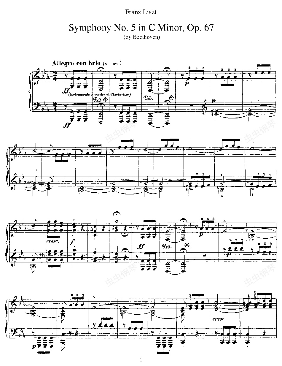 钢琴谱:李斯特改编自贝多芬第五交响乐的钢琴曲
