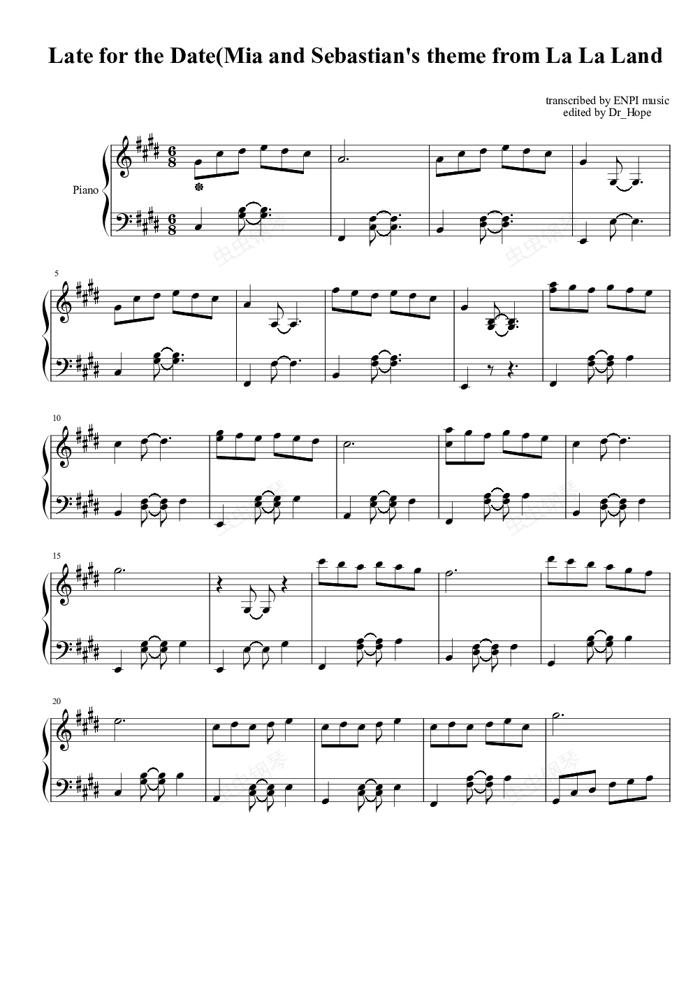 钢琴谱:La La Land爱乐之城Late for the date ( Mia and Sebastian