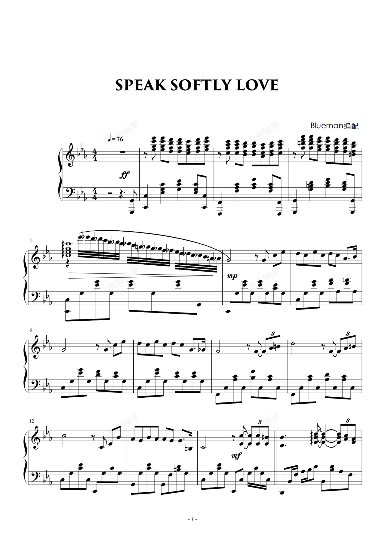 钢琴谱:Speak Softly Love -《教父》主题曲
