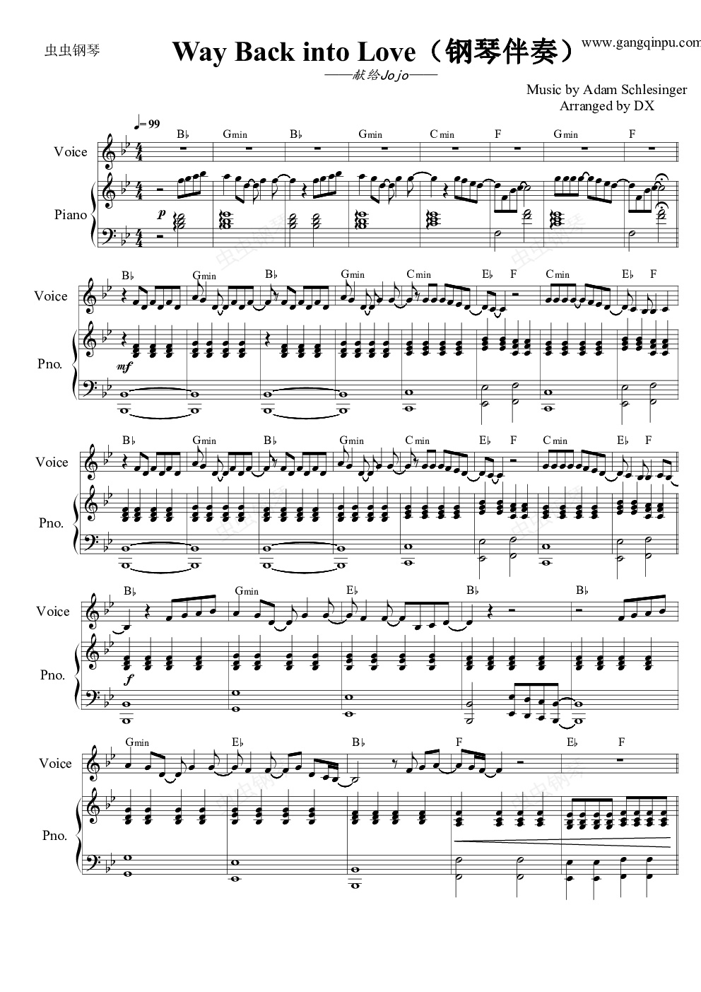钢琴谱:Way Back into Love(钢琴伴奏)