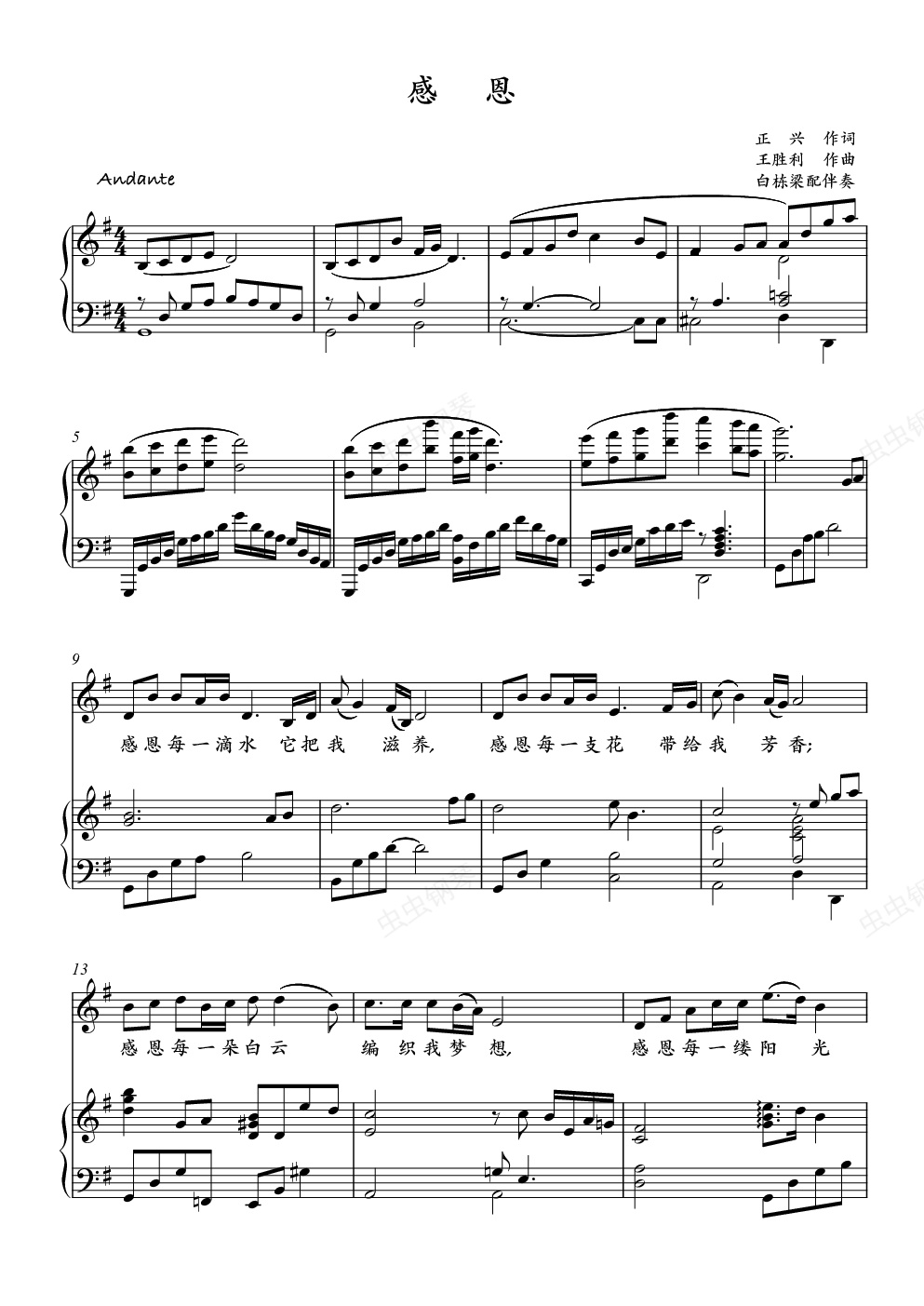 钢琴谱:《感恩》钢琴伴奏谱