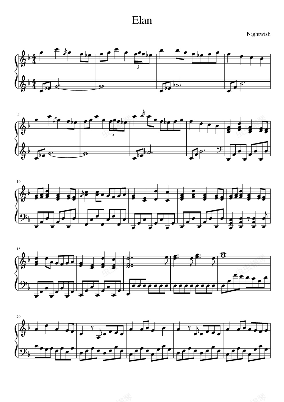 钢琴谱:Elan - Nightwish (夜愿乐队)