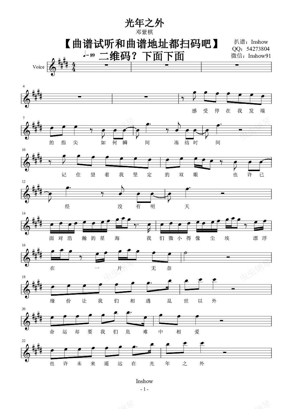 钢琴谱:G.E.M.邓紫棋- 光年之外【弹唱谱】- 试听版