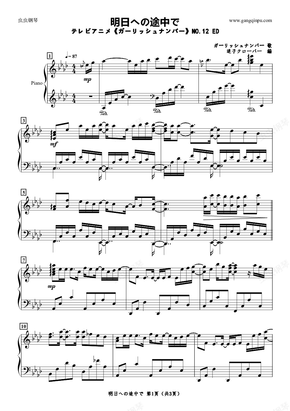 钢琴谱:【——】明日への途中で