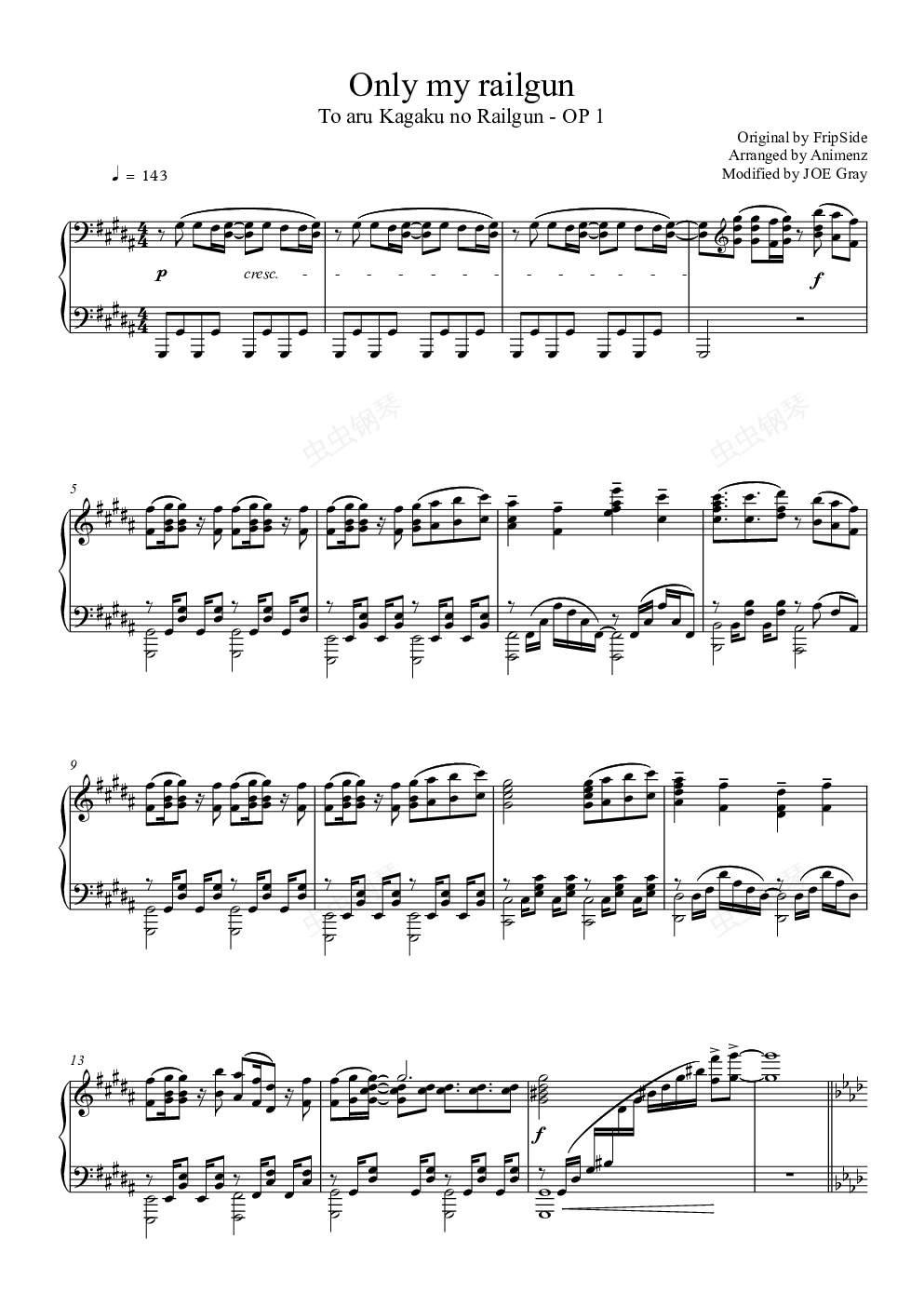 钢琴谱:Only my railgun(《とある科学の超電磁砲》OP 1-TV Size)