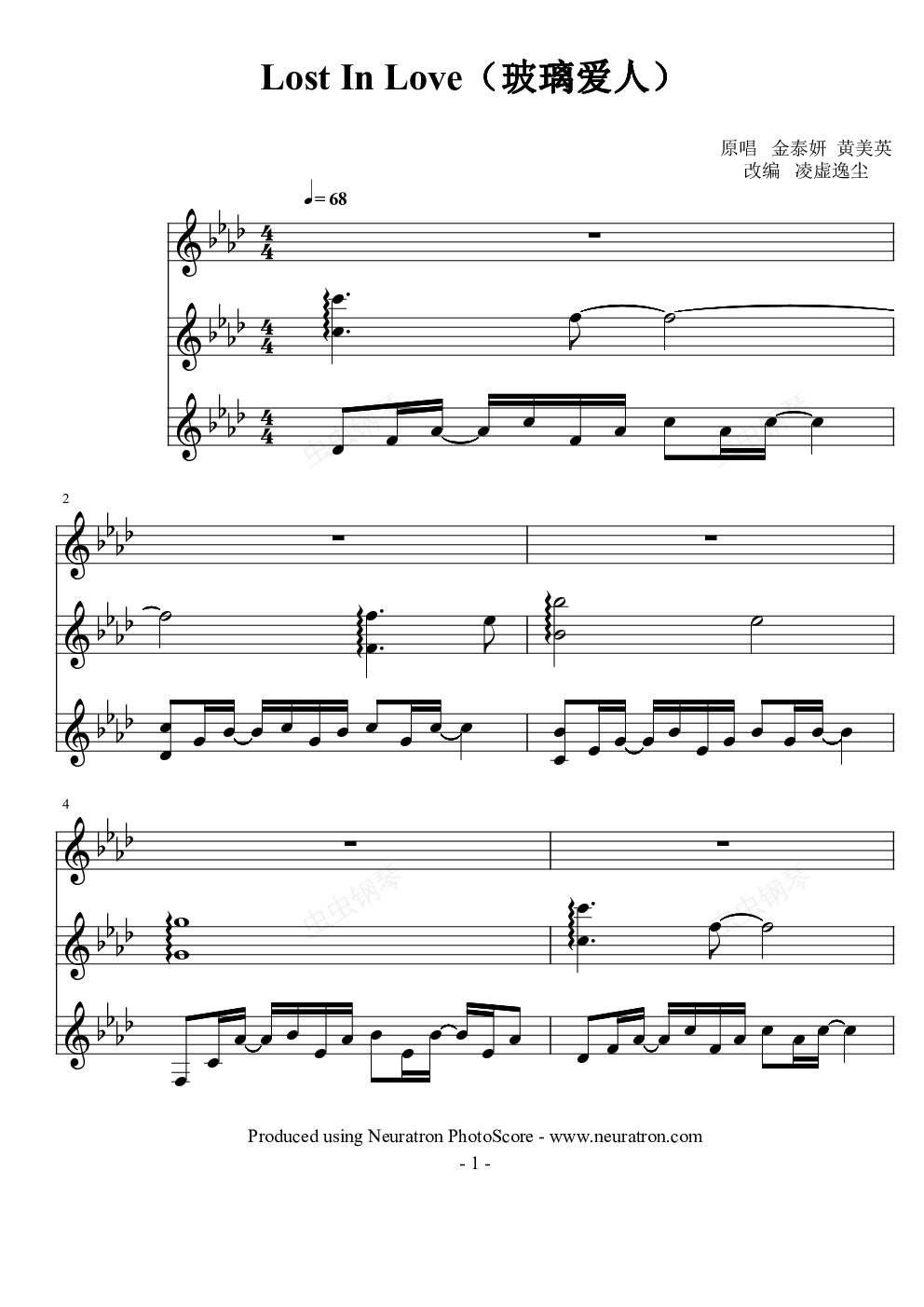 钢琴谱:Lost In love ( 玻璃孩子)