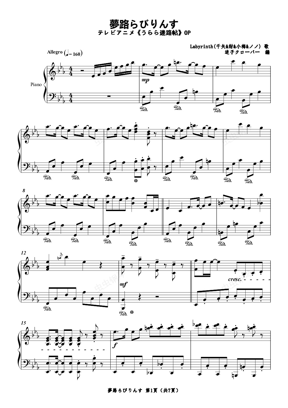 钢琴谱:【乌菈菈迷路帖 OP】夢路らびりんす