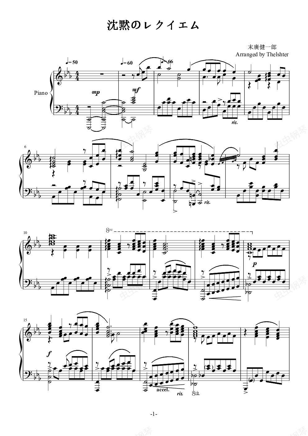 钢琴谱:(蕾姆挽歌)沈黙のレクイエム