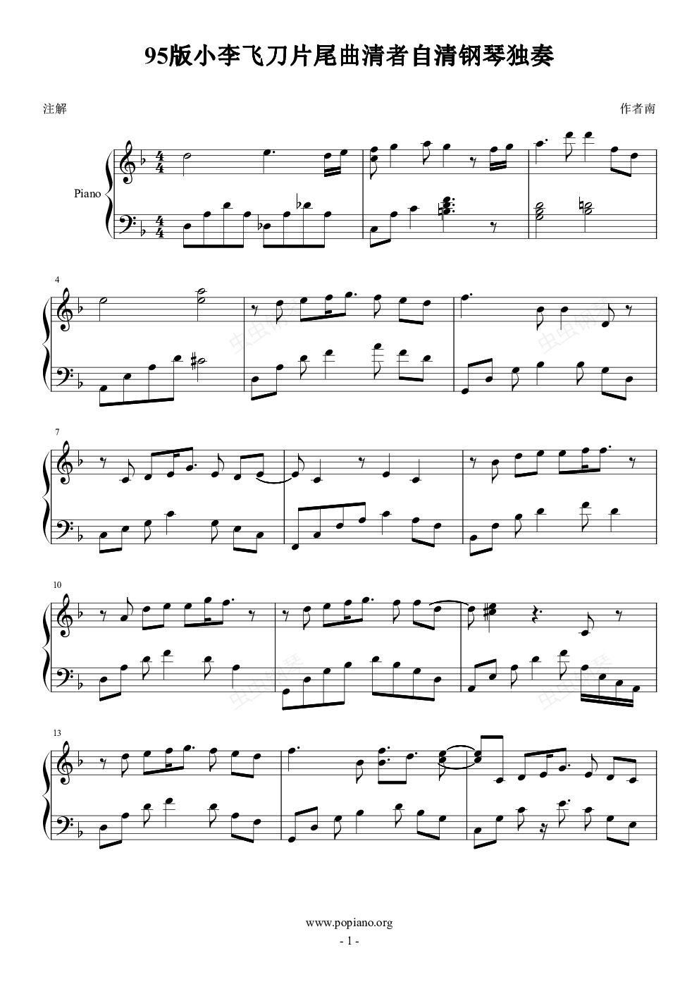 钢琴谱:95版小李飞刀片尾曲清者自清钢琴独奏