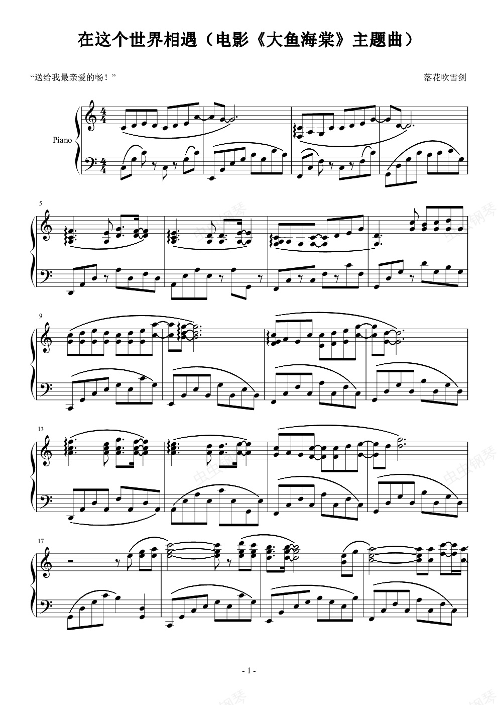 钢琴谱:在这个世界相遇(《大鱼海棠》主题曲)