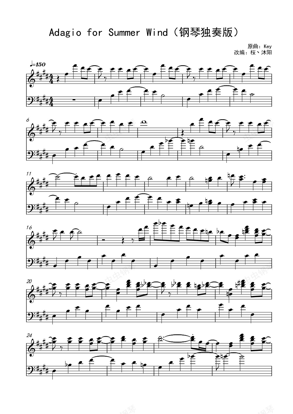 钢琴谱:Adagio for Summer Wind(钢琴独奏版)