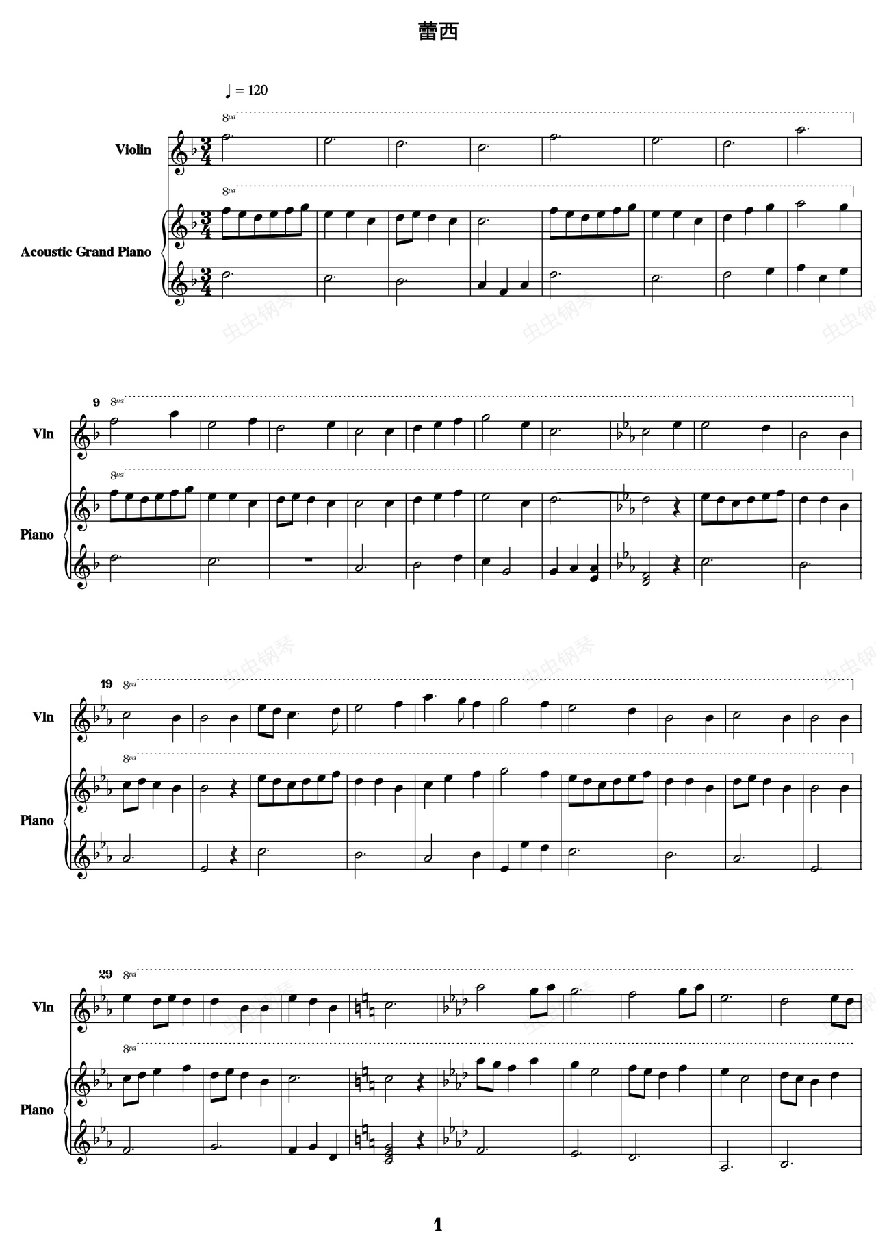 钢琴谱:潘朵拉之心 蕾西 小提琴钢琴合奏版