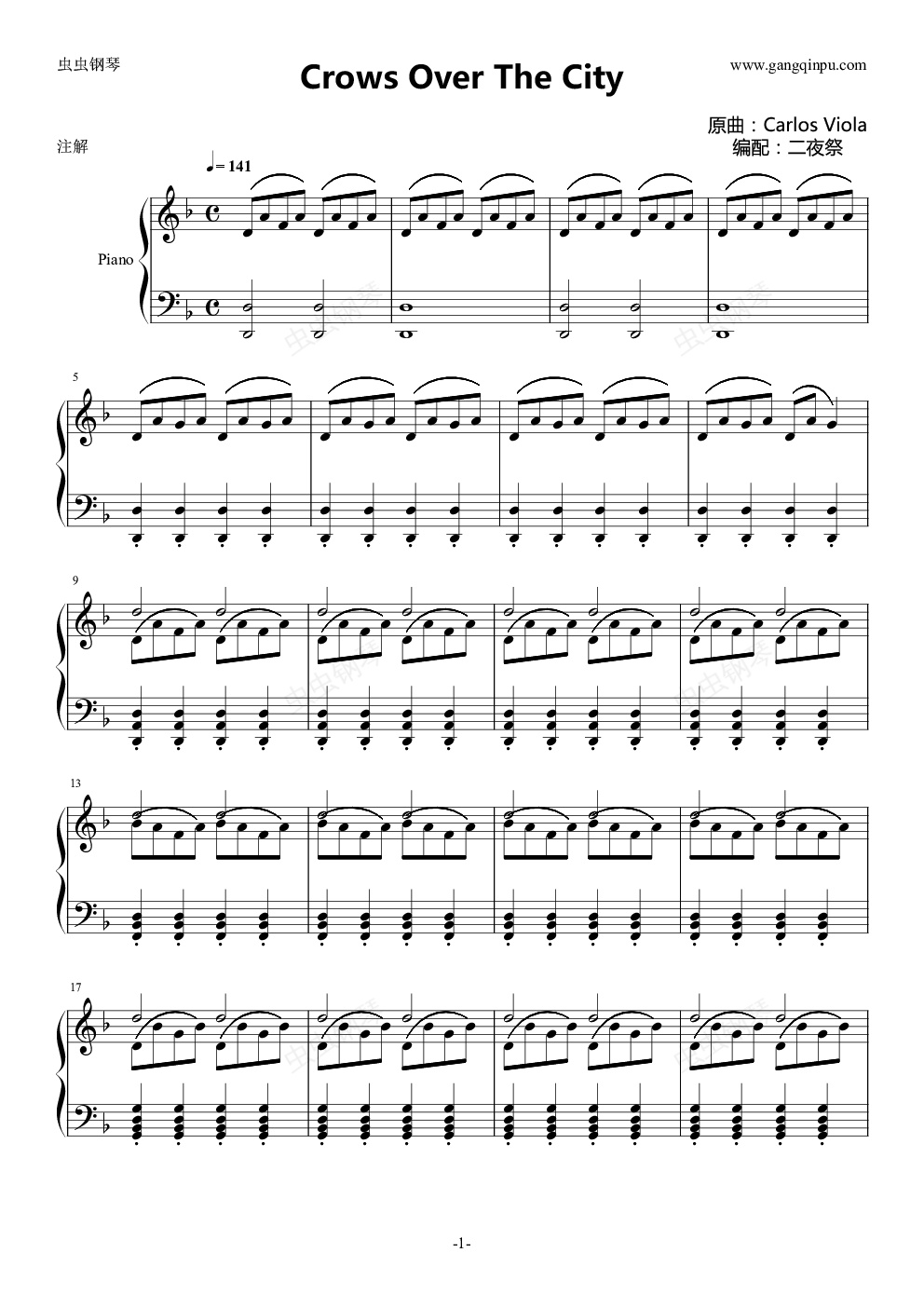 钢琴谱:【最后一扇门】Crows Over The City