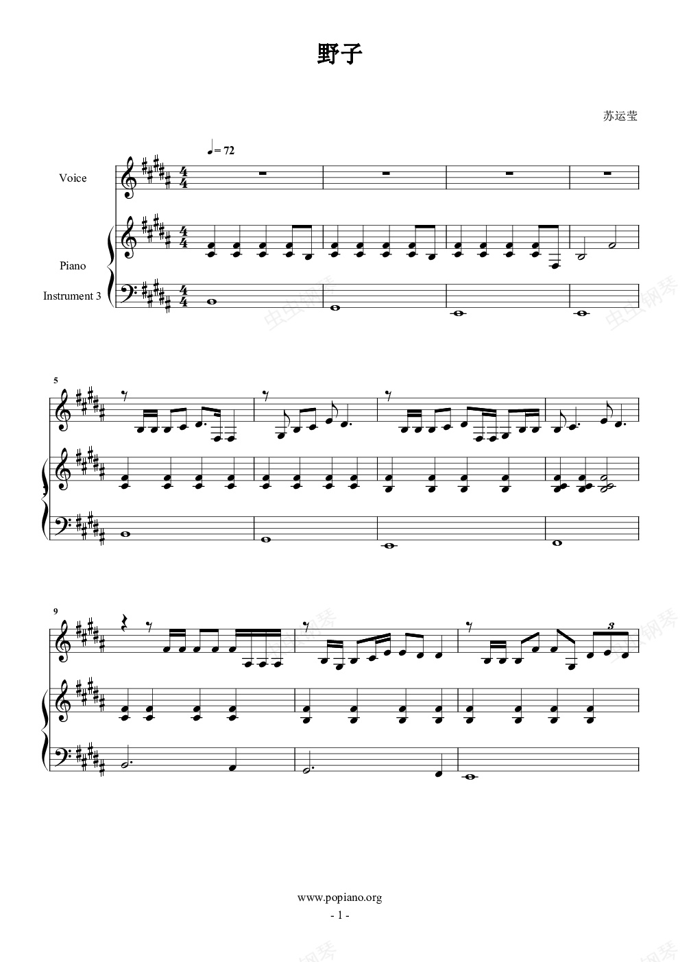钢琴谱:野子
