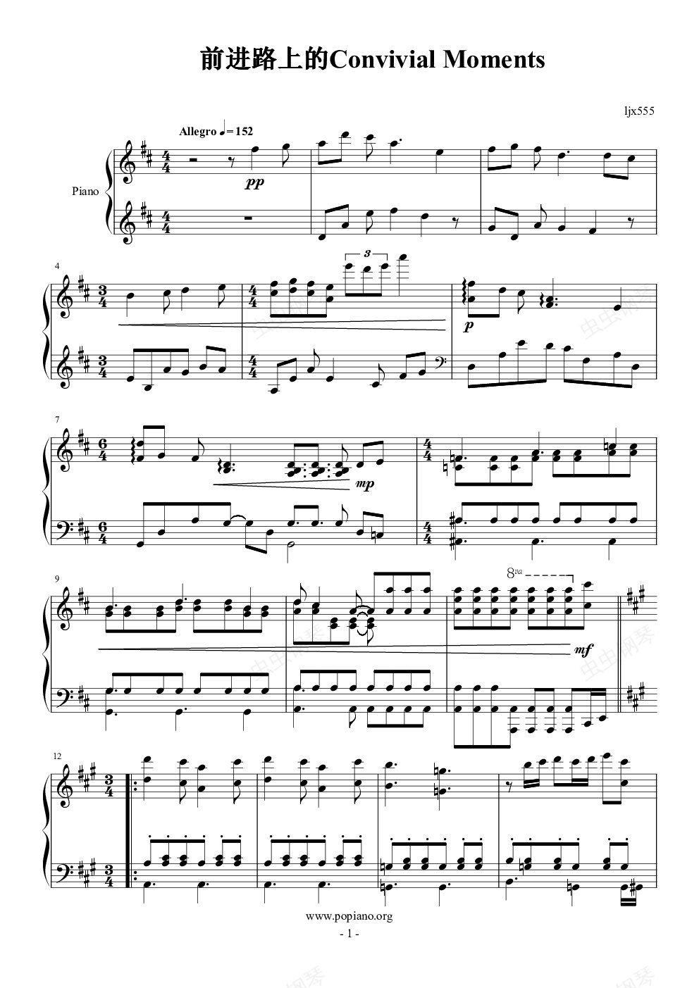 钢琴谱:前进路上的欢乐时光