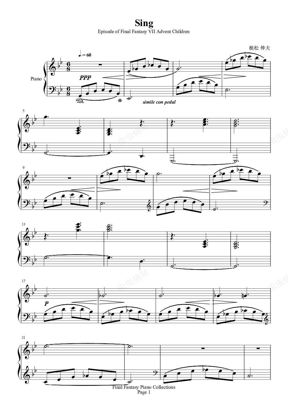 钢琴谱:Sing(Episode of Final Fantasy VII Advent Children)