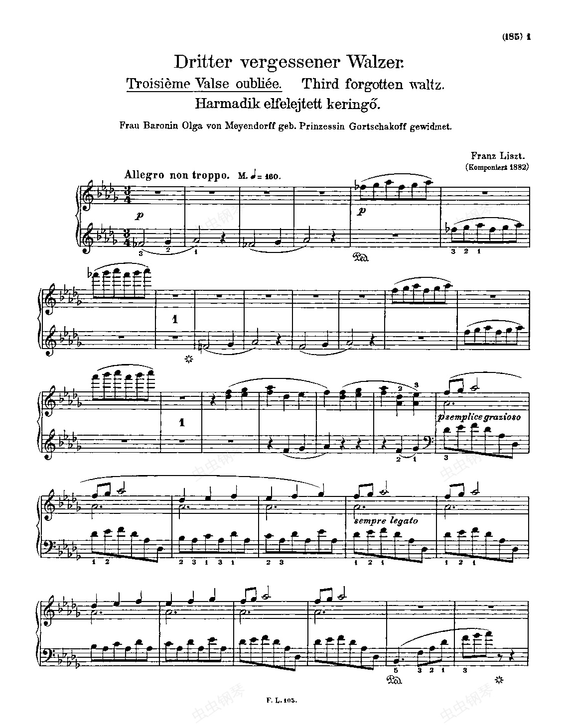 钢琴谱:李斯特  被遗忘的圆舞曲  第三首