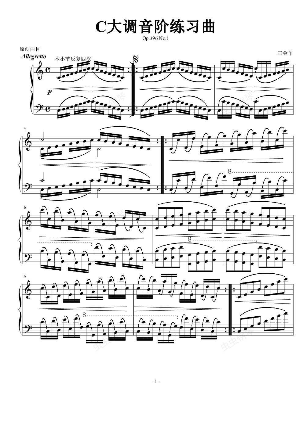 钢琴谱:C大调音阶练习曲