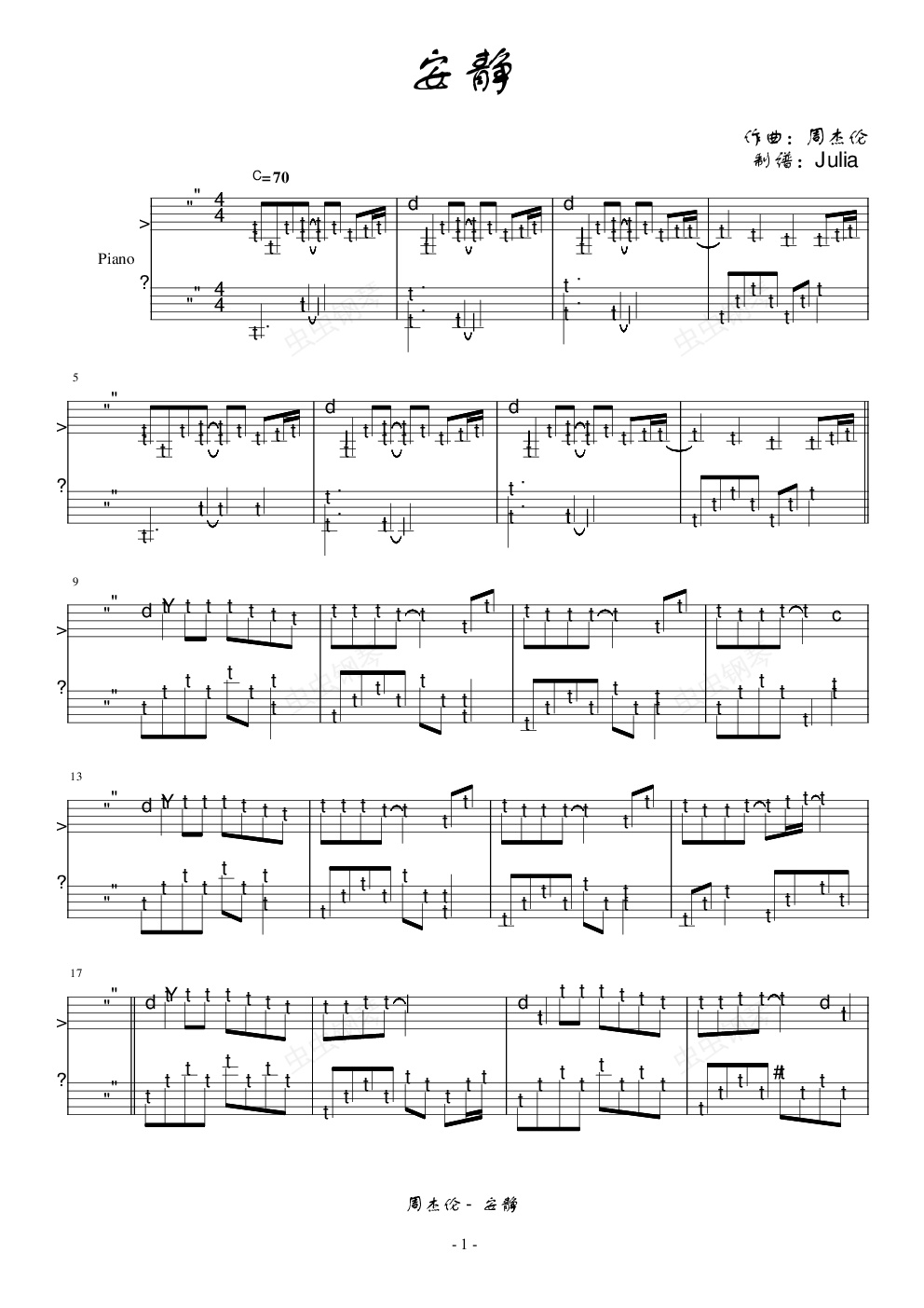 周杰伦 - 安静 只剩下钢琴陪我谈了一天 睡著的大提琴 安静的旧旧的 我想你已表现的 非常明白 我懂我也知道 你没有舍不得 你说你也会难过我不相信 牵著你陪着我 也只是曾经 希望他是真的比我还要爱你 我才会逼自己离开 你要我说多难堪 我根本不想分开 为什么还要我用微笑来带过 我没有这种天份 包容你也接受他 不用担心的太多 我会一直好好过 你已经远远离开 我也会慢慢走开 为什么我连分开都迁就着你 我真的没有天份 安静的没这么快 我会学着放弃你 是因为我太爱你 只剩下钢琴陪我谈了一天 睡著的大提琴 安静的旧旧的 我想你已表现的 非常明白 我懂我也知道 你没有舍不得 你说你也会难过我不相信 牵著你陪着我 也只是曾经 希望他是真的比我还要爱你 我才会逼自己离开 你要我说多难堪 我根本不想分开 为什么还要我用微笑来带过 我没有这种天份 包容你也接受他 不用担心的太多 我会一直好好过 你已经远远离开 我也会慢慢走开 为什么我连分开都迁就着你 我真的没有天份 安静的没这么快 我会学着放弃你 是因为我太爱你 你要我说多难堪 我根本不想分开 为什么还要我用微笑来带过 我没有这种天份 包容你也接受他 不用担心的太多 我会一直好好过 你已经远远离开 我也会慢慢走开 为什么我连分开都迁就着你 我真的没有天份 安静的没这么快 我会学着放弃你 是因为我太爱你
