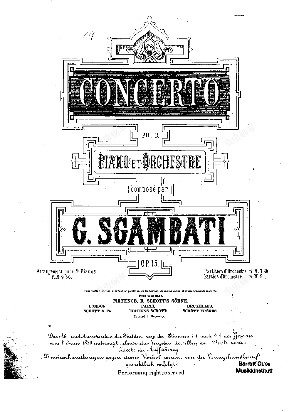 钢琴谱:斯甘巴蒂 g小调钢琴协奏曲 Op.15