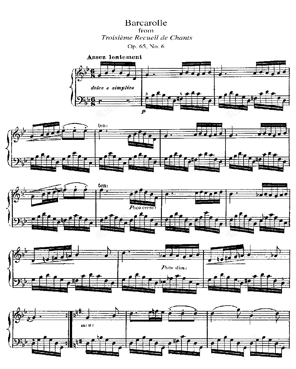 钢琴谱:阿尔坎 g小调船歌 Op.65 No,6