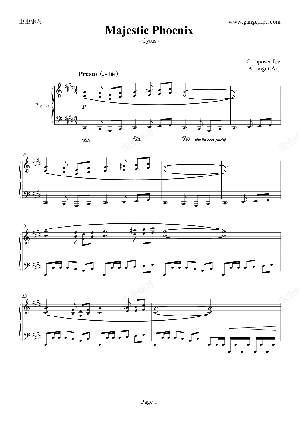 钢琴谱:Majestic Phoenix (百鸟朝凰)