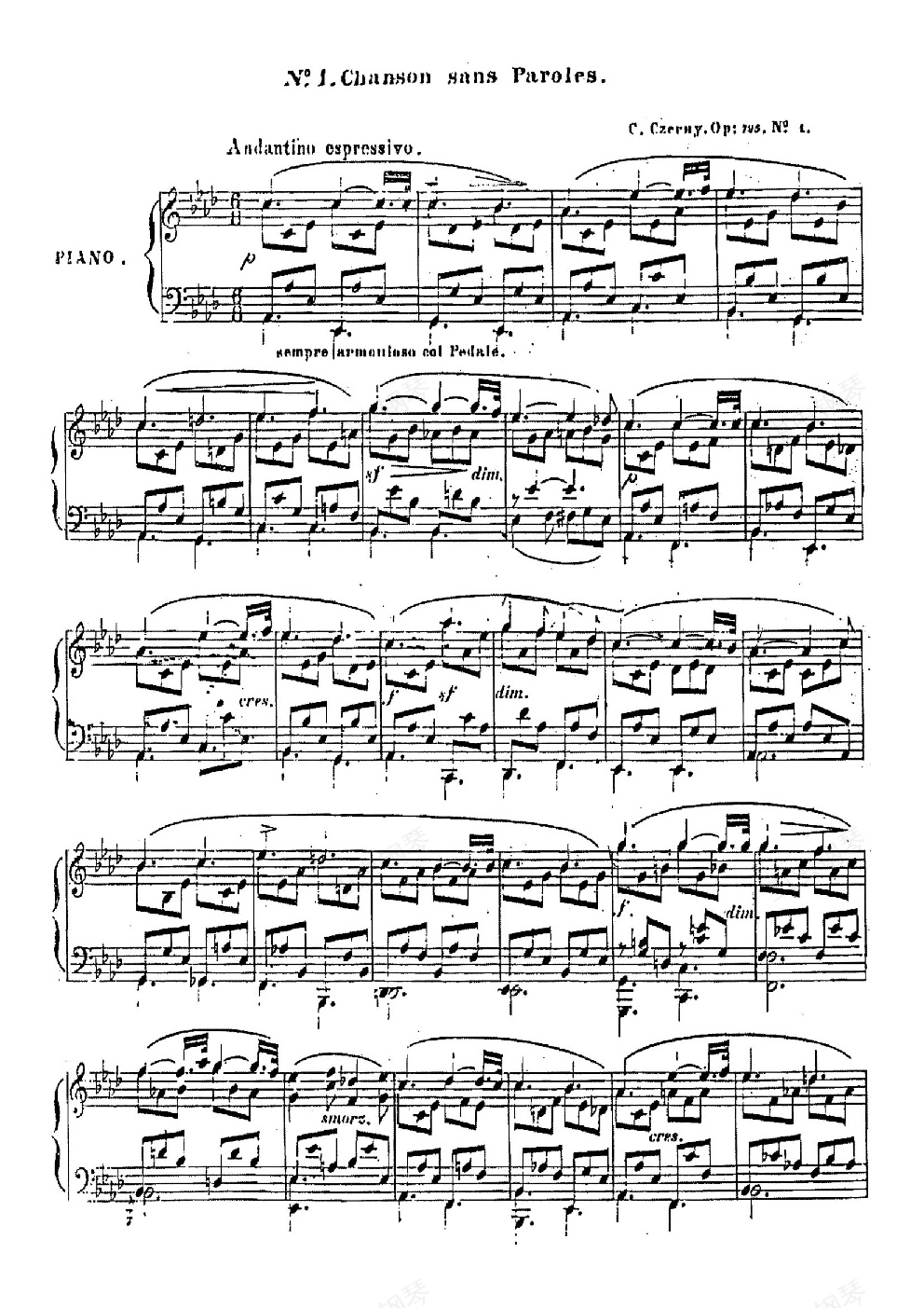 钢琴谱:车尔尼  降A大调无词歌  Op.795 No.1