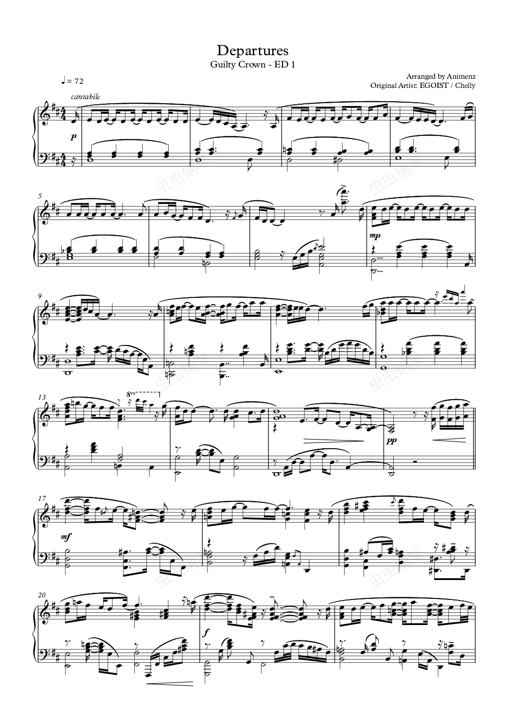 钢琴谱:【Animenz】Departures (罪恶王冠 ED1)