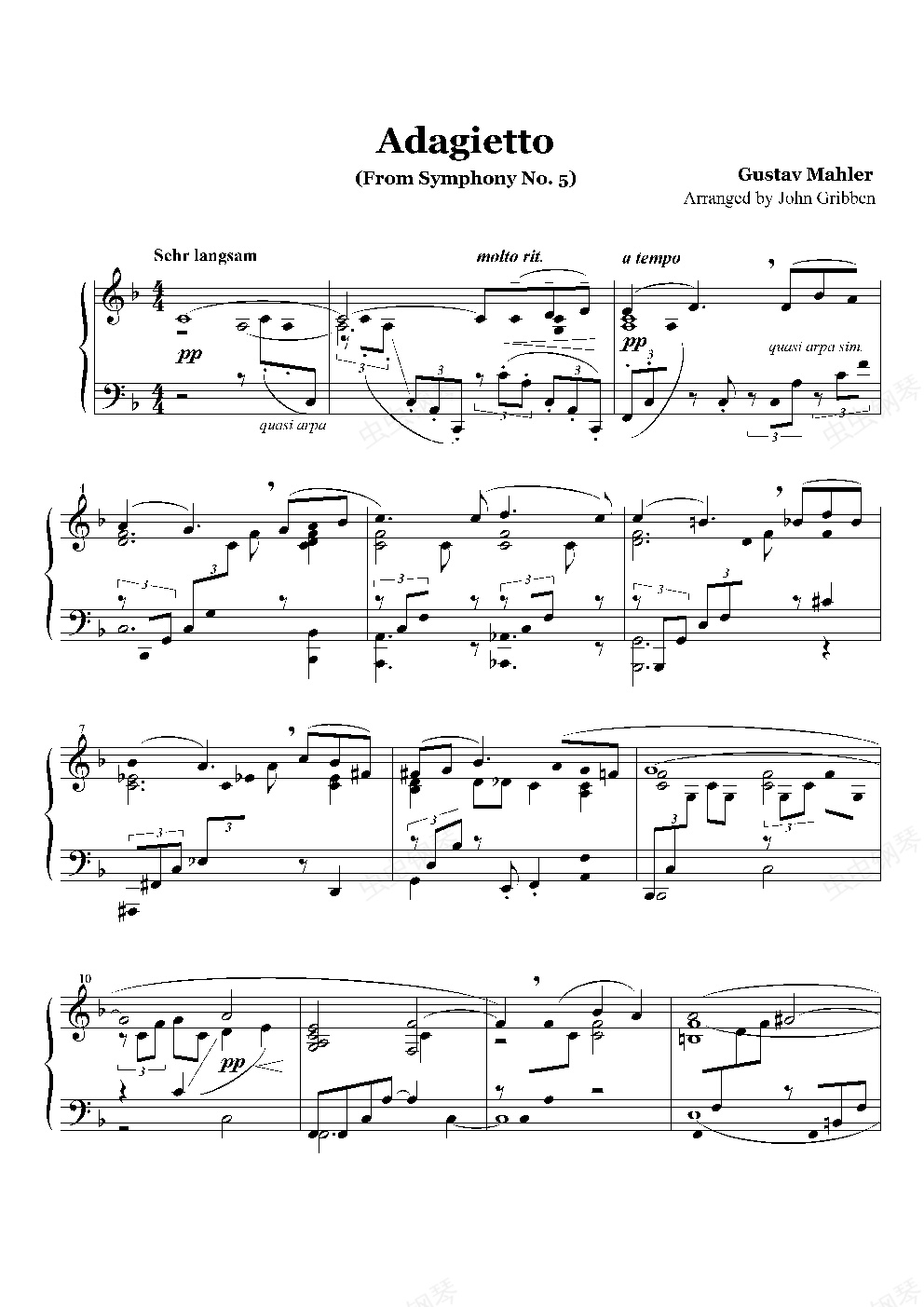钢琴谱:马勒 升c小调第五交响曲 第四乐章 小柔板