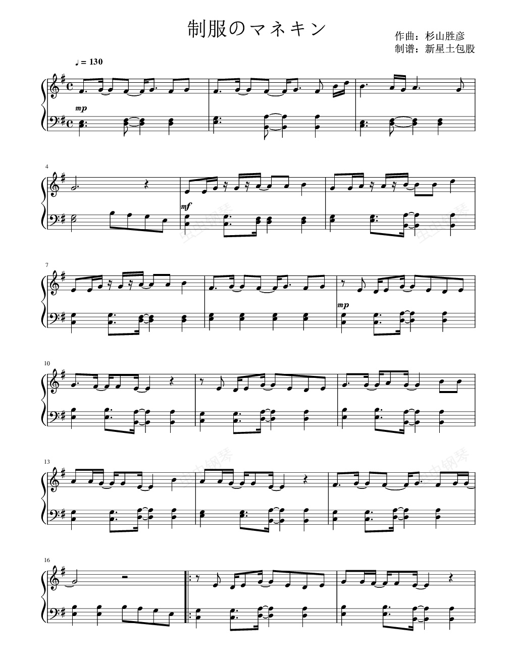 钢琴谱:制服のマネキン