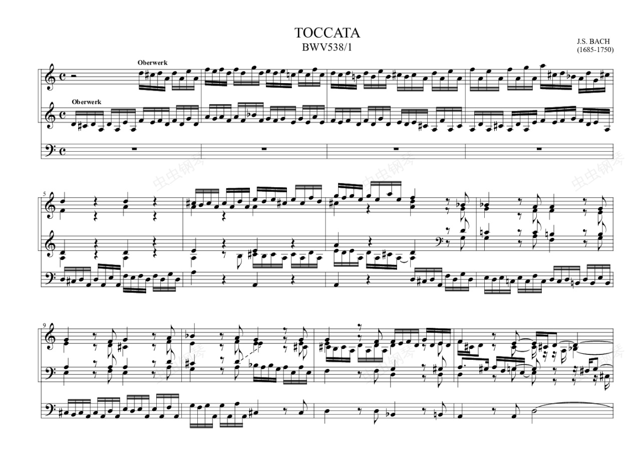 钢琴谱:巴赫 d小调托卡塔 BWV538