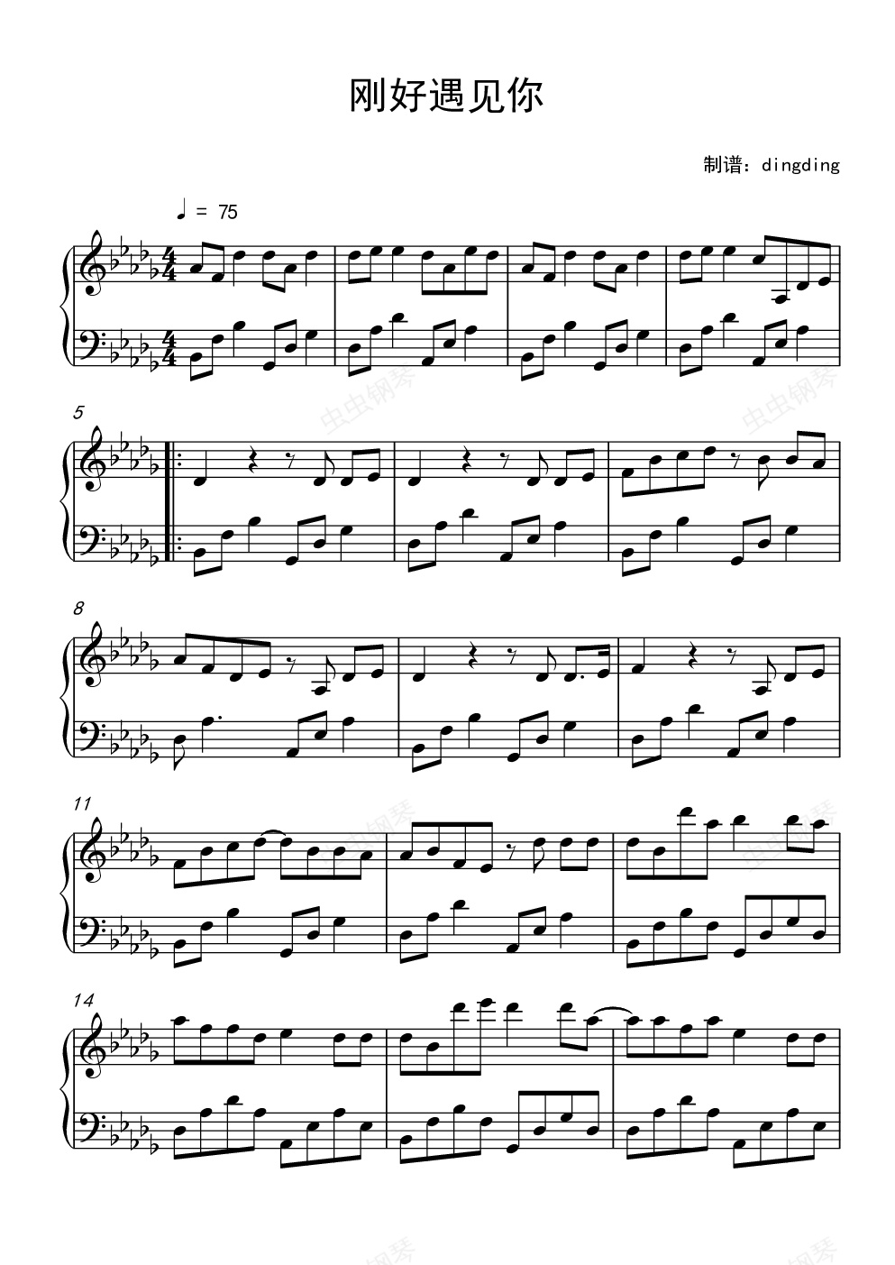 钢琴谱:李玉刚《刚好遇见你》