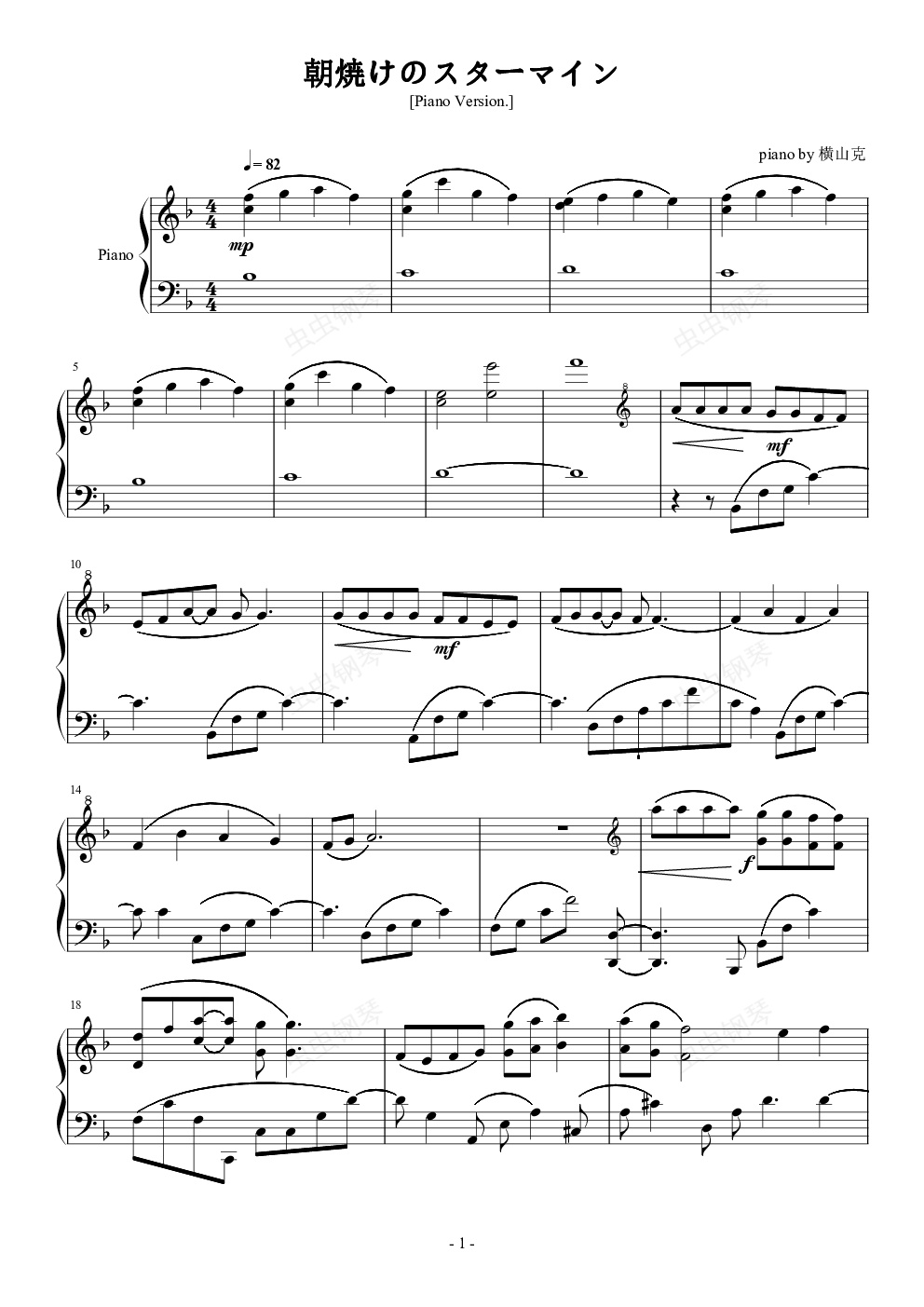 钢琴谱:朝焼けのスターマイン(横山克版本)